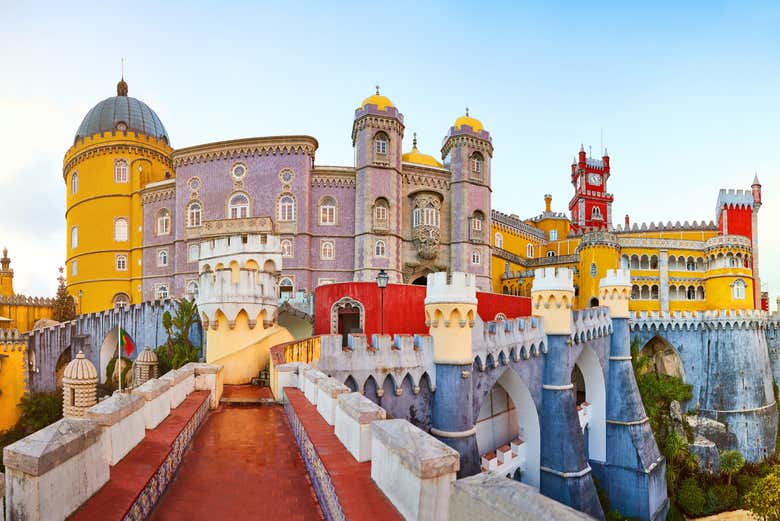 À la fin de la balade dans le centre historique, vous aurez le reste de la journée libre à Sintra pour vous promener, déguster sa délicieuse gastronomie et, bien sûr, visiter ses principaux monuments en autonomie. Le plus célèbre d’entre eux est sans aucun doute le Palacio da Pena, un ancien palais royal portugais qui se distingue par la couleur éclatante de sa façade. En effet, les tons jaunes, rouges et orangés confèrent à ce lieu une esthétique des plus oniriques.